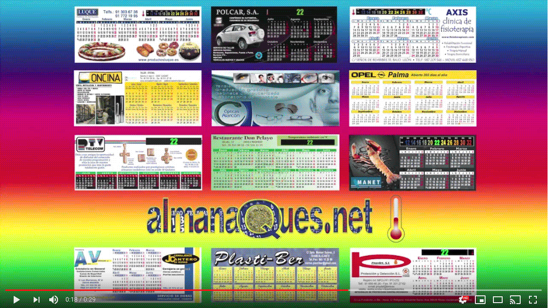 Un ejemplo real: Nuestro cliente TVxCABLE gana dinero con nuestros calendarios el mismo día que los regala.El mundo de las TV por Cable es un negocio muy especial. Los clientes de este segmento de mercado, una parte muy importante de los cuales son amas de casa, cuidan el dinero al céntimo. Nuestro cliente conoce muy bien a sus clientes y los cuida y mima para no perderlos y si alguna vez los pierde se las ingenia para recuperarlos y multiplicarlos: nuestro calendario es una de sus armas mágicas. (*) Nuestro cliente sabe muy bien qué día tiene que distribuir el calendario. Nuestro cliente sabe muy buen qué día tiene que ir a visitar a sus clientes, regalar el calendario con termómetro y traer el dinerito “a caja”, contante y sonante.Y siendo fácil comprobar los datos dAltas/bajas cuando tienes una red de ventas organizada que cobra a domicilio en efectivo (importante entre otras formas de cobro) y que lleva el “dinero a caja” las preguntas tienen respuesta inmediata. Y las preguntas sobre la marcha son: ¿Juan Andrés, cuantos clientes nuevos hoy, cuantos ayer, cuantos están previstos para mañana? ¿Juan Andrés, cuantos clientes recuperados? Bien, Pepe, Bien…! (*) Por razones de confidencialnes lógicas- se debe de dar. Si que nos tienen a sus disposición para ampliar información constructiva. DESCRIPCION: El calendario es uno de los soportes publicitarios más antiguos del mundo que conocemos (*). Fueron los romanos los que le dieron forma y lo impusieron en nuestro entorno más cercano, eso sí, con sucesivas correcciones de la iglesia católica, haciéndolo llegar a nuestros días en su estado y forma actual. Acercándonos a la actualidad, los que más popularizaron el calendario grandote de pared, esos que llenaban la mitad de la pared de las cocinas de nuestras abuelas, fueron los norteamericanos con sus famosas chicas pin-up. No había un solo gran anunciante de la USA de los tiempos de la segunda guerra mundial que no tuviese su calendario pin-up. Casi todas las más famosas actrices del Hollywood pasearon su imagen en los calendarios de esa época. (**) En nuestro mundo hispano-latino también ha habido calendarios –algunos aún sobreviven- que han sentado cátedra marcando toda una época. Por ejemplo el archi famoso “calendario zaragozano” heredero de una tradición que viene de los años 1700 con el famoso “El gran piscator salmantino” de Torres Villarroel. Nuestra empresa, adaptándose a los tiempos que corren, fabrica calendarios para este mundo de hoy; para nuestras casas y lugares de trabajo. Nuestros habitats modernos suelen utilizar cada vez menos el calendario grandote que tanto apreciaban nuestras abuelas; siempre ha habido, hay y habrá excepciones y cariño por los preciosos calendarios grandes de pared. De hecho es un mercado estable. Los calendarios que más fabrica nuestra empresa suele ser discretos y con un plus de utilidad: fabricamos calendarios a los que le añadimos un termómetro de temperatura ambiente. Un termómetro de temperatura ambiente que te marca de continuo la temperatura que tienes a tu lado, en casa, en la oficina; Esos lugares en los que pasas la mayor parte de tu tiempo y en los que –si te descuidas- puedes resfriarte o por el contrario estás con la calefacción demasiado fuerte. La temperatura de la calle, de la ciudad, del país y del mundo ya te la dicen la tele, el teléfono, el ordenador… Esta es una de las razones, tal vez la principal, por la que nuestro calendario termómetro sigue siendo moda publicitaria 2000 años más tarde de que lo los romanos lo popularizaran.